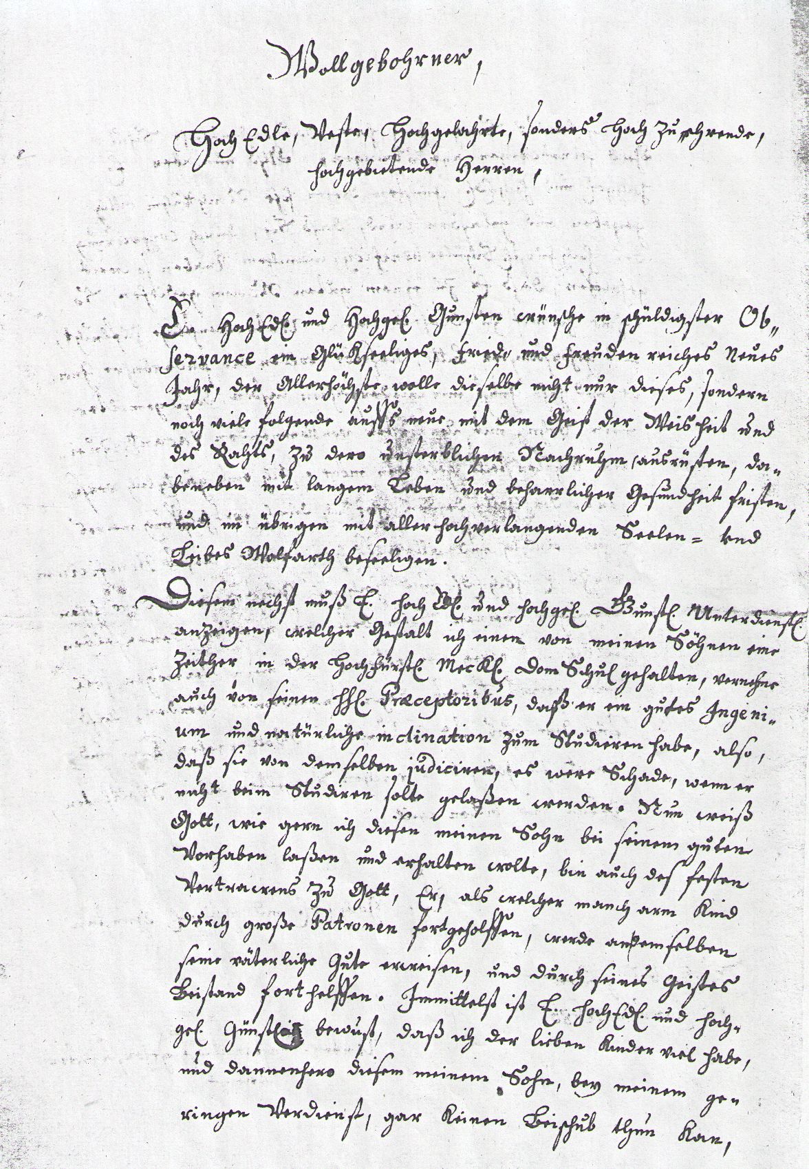 Sohns eintzig und allein suche, werde dieses Beneficium,